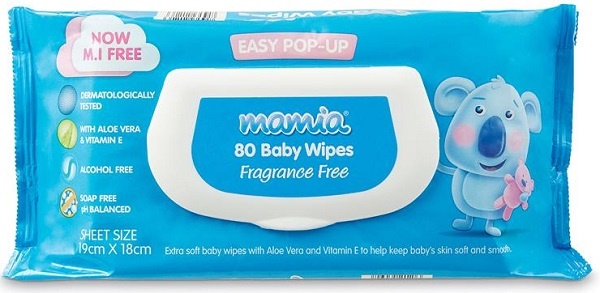 The Mamia Fragrance Free Baby Wipes are suitable for newborn babies, They have been Dermatologically tested, and are Alcohol, soap & paraben free. They have been enriched with aloe and vitamin E.