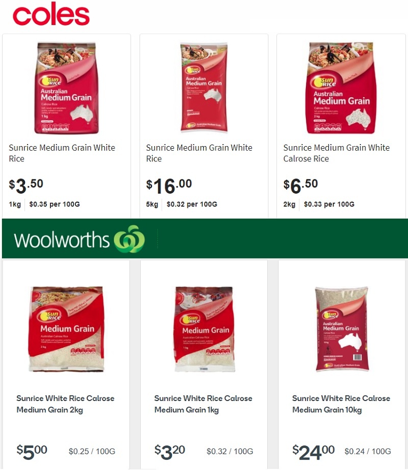 Medium Grain white rice cost looks to be the most popular rice sold in Australian supermarkets, it certainly is the most stocked of all the rices in my local supermarkets.
