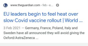 While Italy refuses to permit one of its manufacturers to honour its commitment to send 250,000 doses of the British-Swedish vaccine, manufactured in Italy, to Australia.