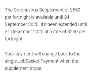 These payments, the Coronavirus supplement, often mentioned as being for Jobseeker, are also paid for other benefit recipients. It is not ONLY for Jobseeker.