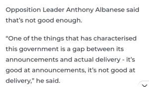 The opposition leader has stated that the Government is good at messages but not delivery..