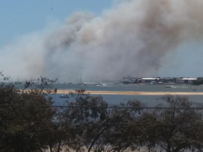 Evacuations of the area are under way, and fire crews including the yellow rural crews are moving to the area. Even at 11:30 am the rural fire crews are racing through Southport on the way to the fire. Including one from the Bonogin Valley.