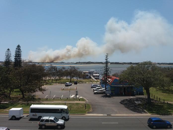 With temperatures at about 31C on the Gold Coast, a fire began at the Spit, on Queenslands Gold Coast, at about 10am today; 21st November 2015.