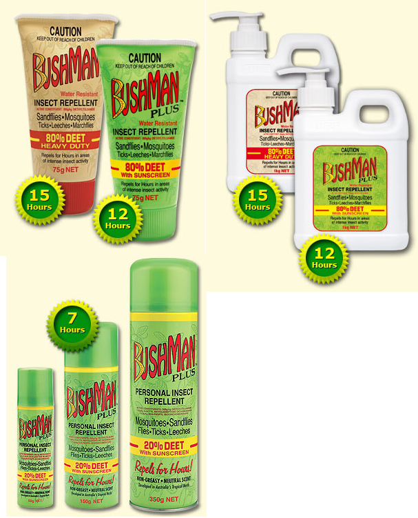Comprehensive tests http://www.bushman-repellent.com/pdf/bushman80.pdf PDF source document seem to show that no bites were recorded, in the first 8 hours of use, using DEET Bushmans Plus, and none in the first 11 hours with the Bushman Heavy Duty lotion.