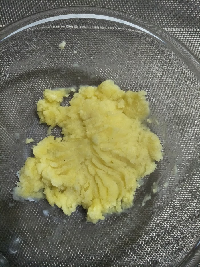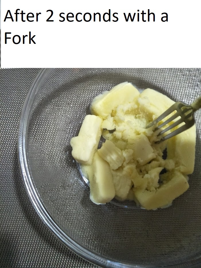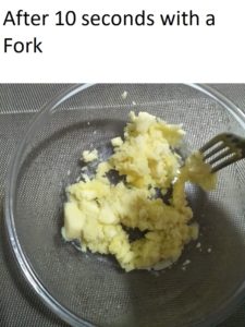 - then rub a fork through the potato blocks to create mash (about 30 seconds),