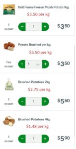 The 4 kg bags of fresh potatoes worked out at about $1.50 per kg, but if buying just one kg, the price is $3.50 per kg, the same price as the frozen option.