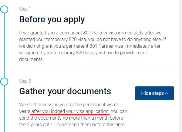 Two years after the Subclass 820 Partner Visa was granted the Applicant and Sponsor were informed that they were eligible to apply for a Subclass 801 Permanent Partner Visa.