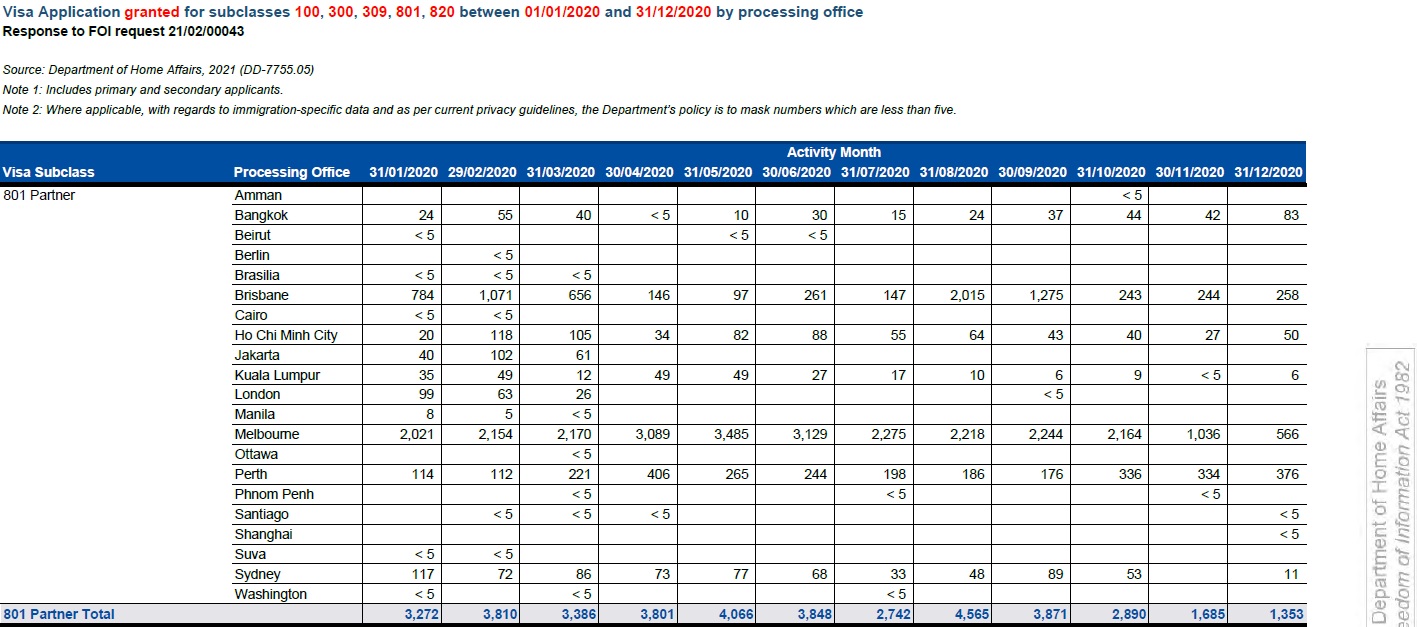 In 2020, there were 41,704 Subclass 801 visa applications finalised.
