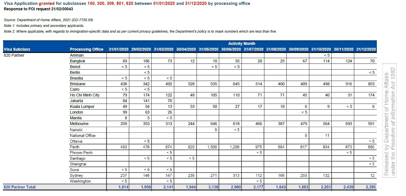 In 2020, there were 28,165 subclass 820 visa applications finalised.