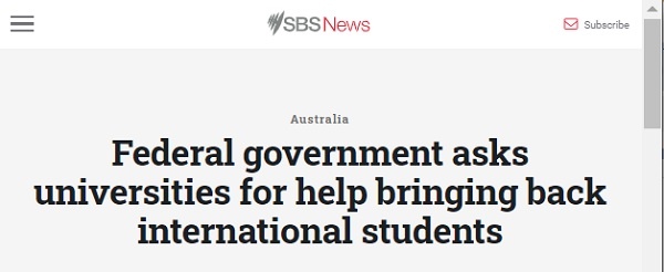 This has been reported by the SBS as “Federal government asks universities for help bringing back international students.”